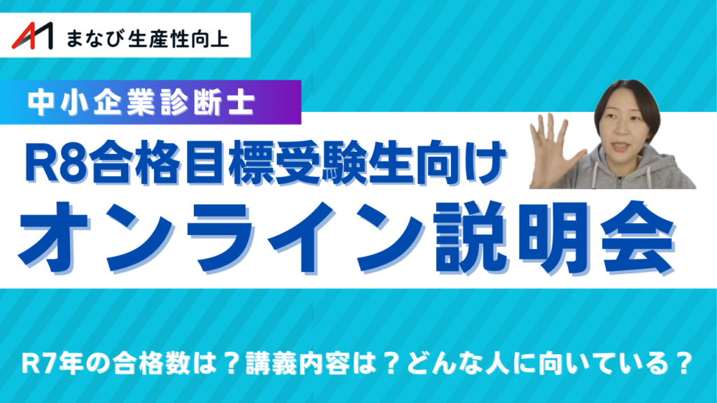まなび生産性向上は、令和4年度に1人の友人を個別指導で合格に導いたところから始まった予備校です。その後、仲間を増やしながら多数の中小企業診断士を輩出しています。