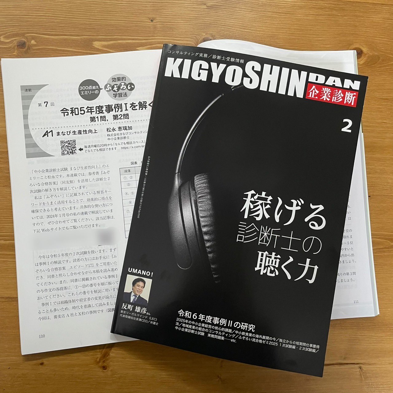 代表松永が、月刊企業診断で連載中の「300点超えエミリーの効果的ふぞろい学習法」にて、「令和5年度事例Ⅰを解く(第1問、第2問)」というテーマで寄稿しました。
