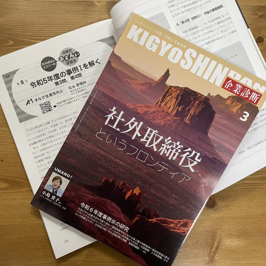 代表松永が、月刊企業診断で連載中の「300点超えエミリーの効果的ふぞろい学習法」にて、「令和5年度事例Ⅰを解く(第3問、第4問)」というテーマで寄稿しました。 お手元のふぞろいな合格答案と併せて、ご活用ください。 https://twitter.com/emily_study_... -